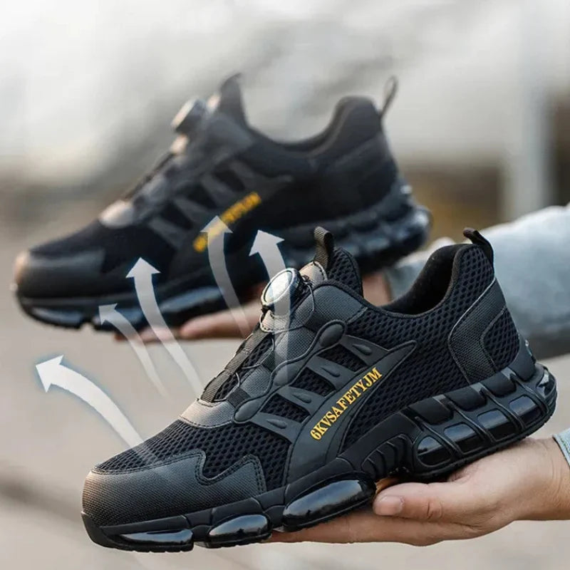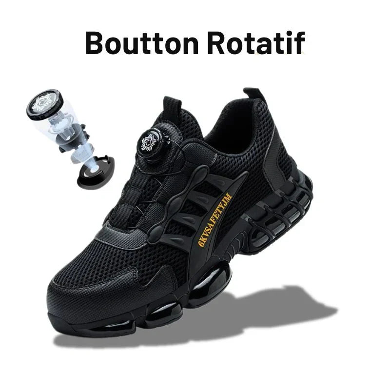Ces baskets de sécurité intègrent un système de laçage à bouton rotatif qui vous permet de serrer ou desserrer vos chaussures d'un simple geste. Vous gagnez du temps et bénéficiez d'un maintien précis, sans avoir à refaire vos lacets.