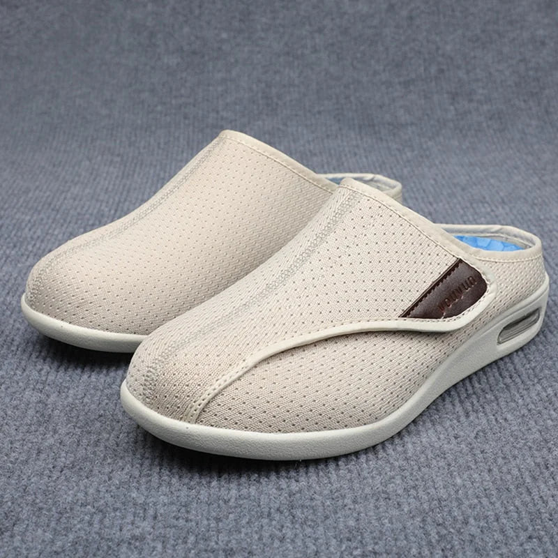 Conçus pour les pieds à besoins spécifiques, ils offrent une zone des orteils extra-large qui libère vos orteils sans compression. La tige en toile perforée respire naturellement et s'adapte aux variations de volume au fil de la journée. Vos pieds restent au frais, au sec et libres de tout frottement.